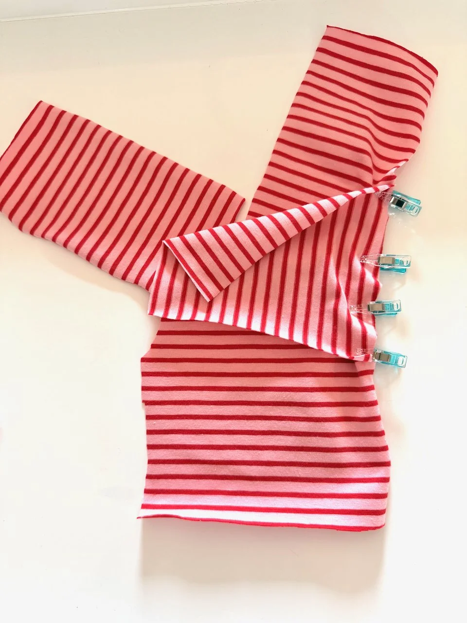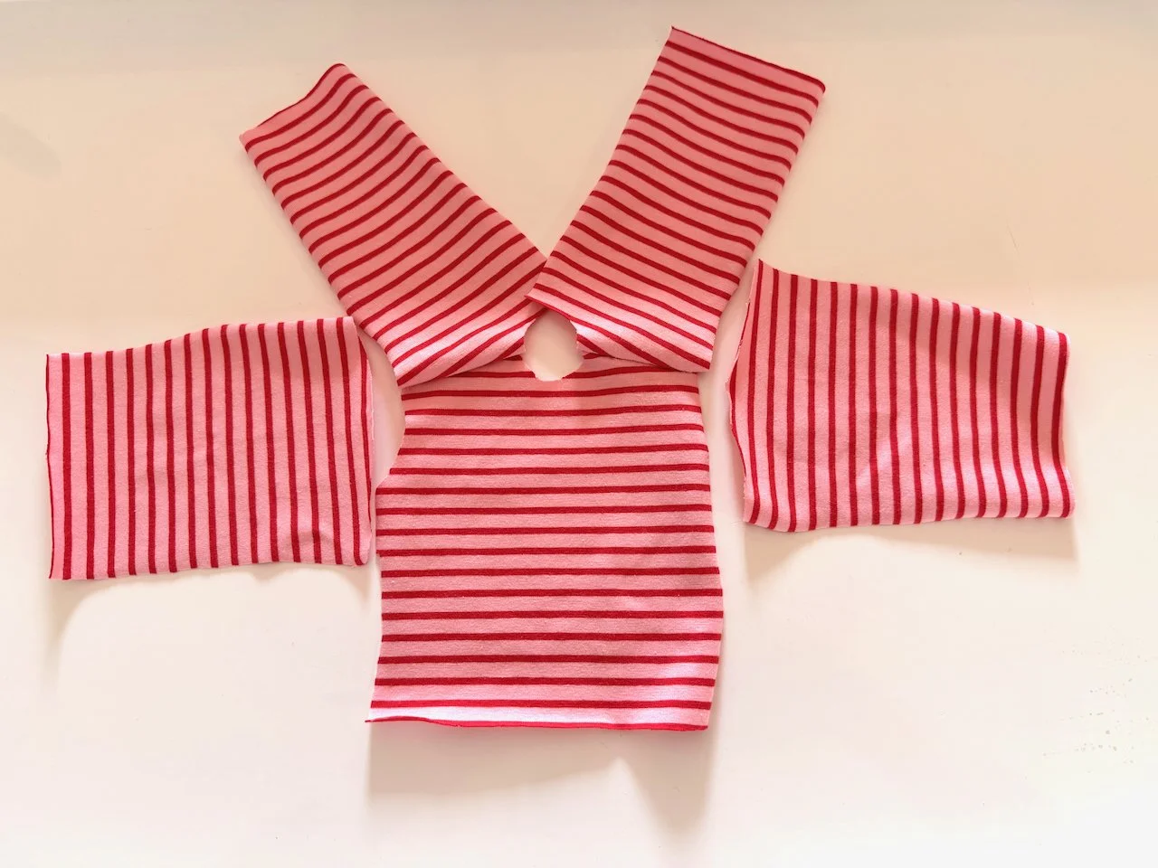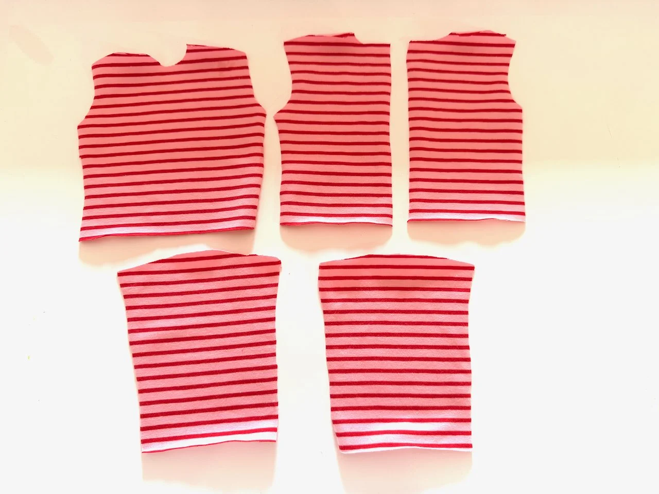 T-Shirts are easy and fun. I sew doll t-shirts and leggings with cotton jersey knit fabric. It’s a very forgiving fabric and very soft.