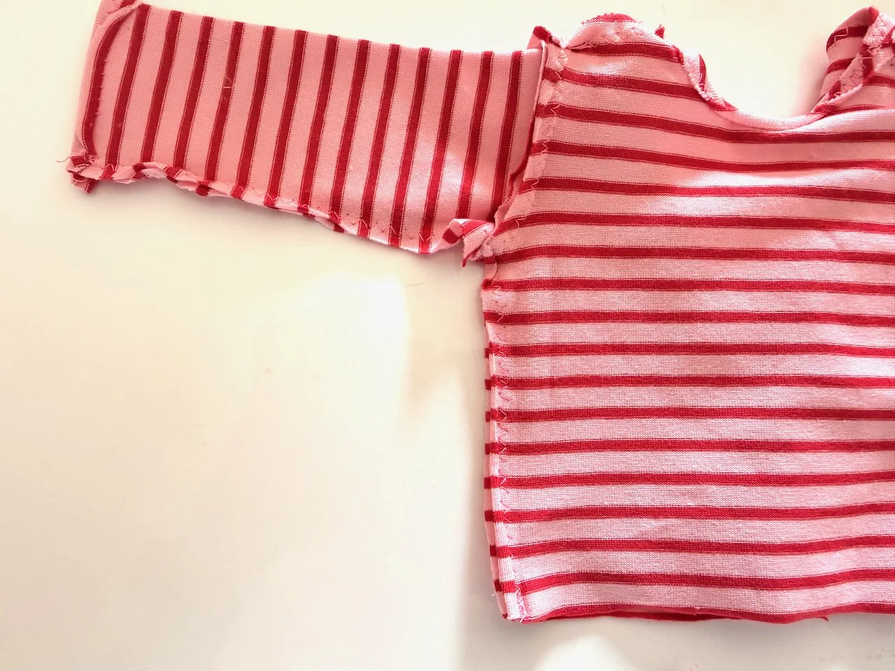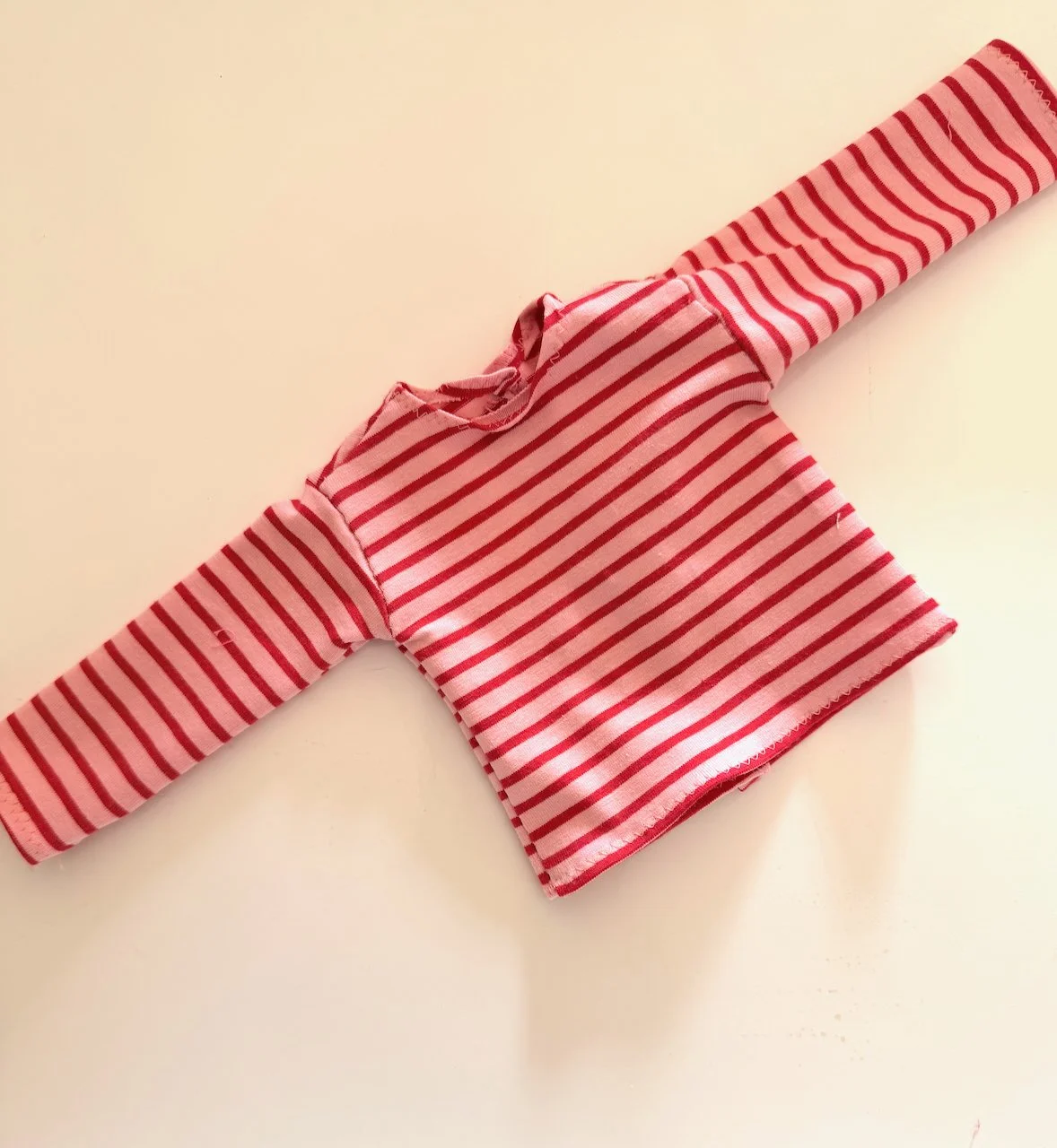 Although a ballpoint needle is recommended for sewing knit fabrics, I don’t think it is entirely necessary for doll clothes. Dolls don’t move and put stress on the seams.