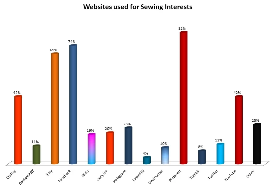 Amanda also asked which sites do those who sew search for information and community. Pinterest was a clear number one with Etsy and Facebook close behind (this is my experience too)